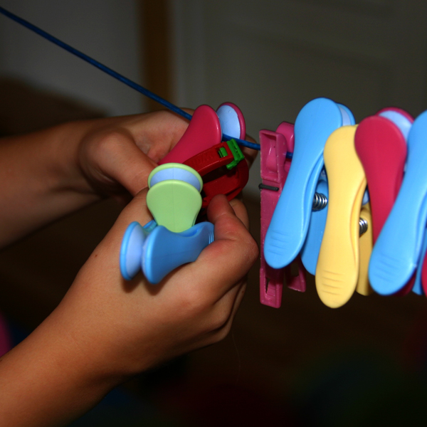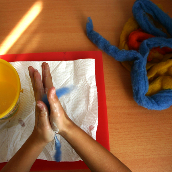 - Tastspiele: Alltagsgegenstände wie Löffel, Spitzer, Bleistift, Radiergummi etc. sammeln und unter einem Tuch verdeckt spüren und erraten.